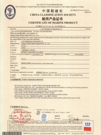 Jiangsu Huahai Ship Signal Manufacturing Co., Ltd. was established in 2009. It is a marine fireworks signal production enterprise formed by the integration of four marine fireworks signal manufacturers in Jiangsu Province, namely the former Haimen Huahai Water Safety Equipment Co., Ltd., the former Dongtai Welfare Fireworks Signal Factory, the former Haimen Jianghai Ship Equipment Co., Ltd., and the former Qidong Highway Traffic Signal Rod Factory. Huahai Company has a good reputation among domestic and foreign customers due to its large scale, strong product professionalism, high quality, excellent service, and good reputation. The company has established a comprehensive quality assurance system and has passed the CCS ISO9001 quality system certification. Its products are strictly developed, tested, produced, and inspected in accordance with the latest international standards such as SOLAS, MSC.48 (66), MSC.81 (70), MSC.200 (80), MSC.218 (82), and MSC.226 (82). The product has been recognized by multiple ship inspection agencies such as China Classification Society (CCS), French Classification Society (BV), and Russian Ship Registry (RS). The product is currently exported to countries such as Japan, South Korea, Singapore, India, Vietnam, Mexico, France, Australia, etc. The company has strong technical capabilities and is committed to the research and development of new products, which have won multiple national patents and technology awards. The company always stands at the forefront of technology in the research and development of life-saving equipment, bringing customers higher quality and safer products.